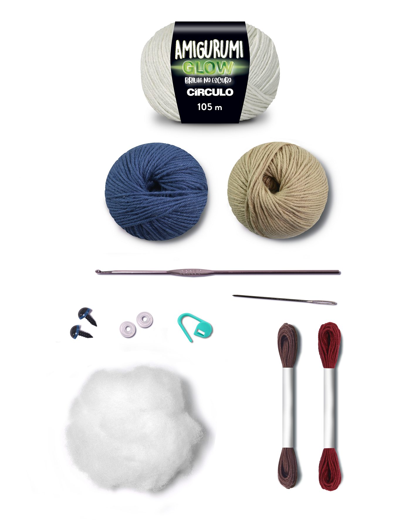 Descrição Kit Amigurumi Coleção Espaço Brilha no Escuro - Astronauta 04