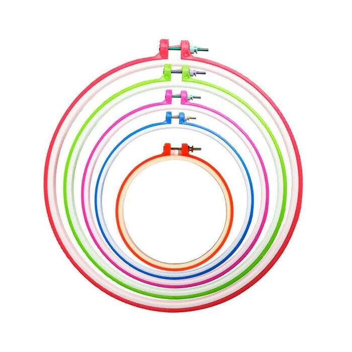 Os bastidores plastico com tarracha serve é ideal para manter o tecido o mais esticado possivel! O regulador permite fazer o uso de tecidos mais grosso como jeans, toalhas e sarjas. Os bastidores são mais utilizados em bordados, mas existem diversas Com este Kit de 5 tamanhos é possível produzir diversas peças de artesanato.