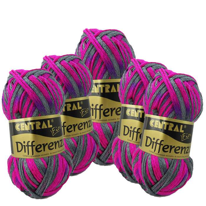 Lã Fio Differenza ROXO/CINZA Central Fios 100g - Pacote C/5