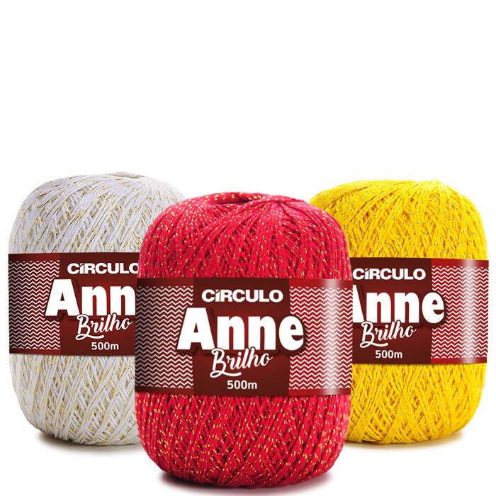 Anne Brilho é um produto composto de fibras de algodão mercerizado e toque de brilho que pode ser dourado ou na cor do fio. Na decoração é muito usado em trilhos de mesa, sousplat, porta copo, porta guardanapo e almofadas, deixando tudo com ar mais festivo. Para vestuário empresta um ar mais sofisticado às peças podendo ser usado para confecção de blusinhas, vestidos, saias e acessórios diversos.