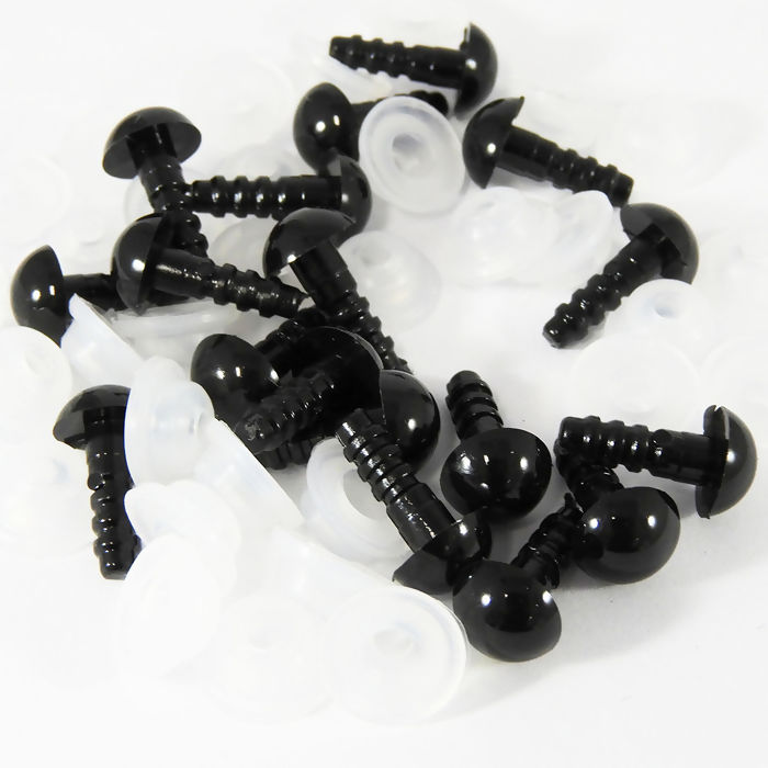 Descrição Olho P/ Amigurumi Nº 07 Redondo Preto C/ Pino 100 Unidades