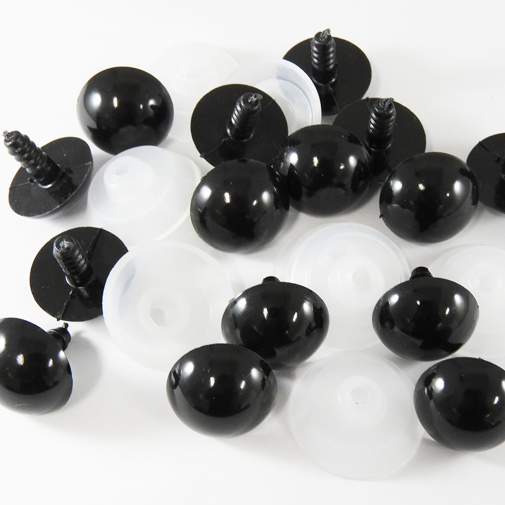 Descrição Olho P/ Amigurumi Nº 20 Redondo preto C/ Pino 100 Unidades