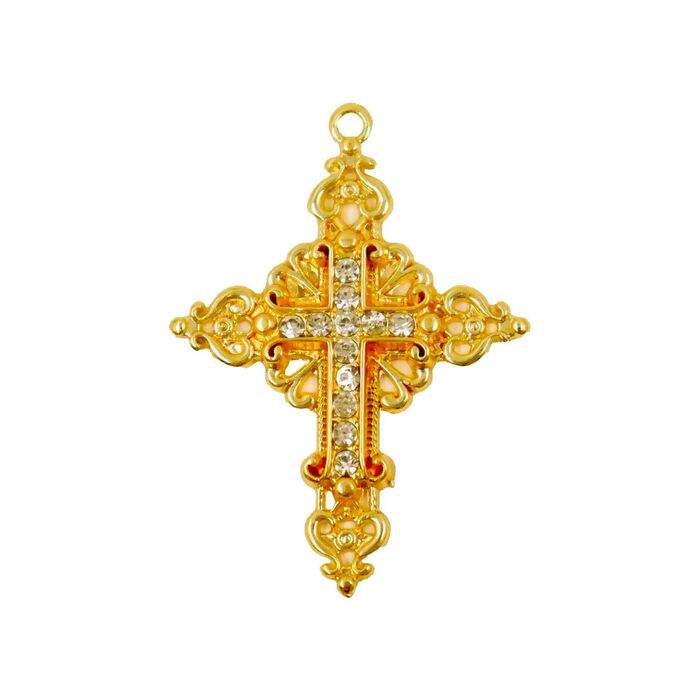 Detalhe Pingente Cruz Dourado 6x4,5cm C/ Strass 07 Unidades