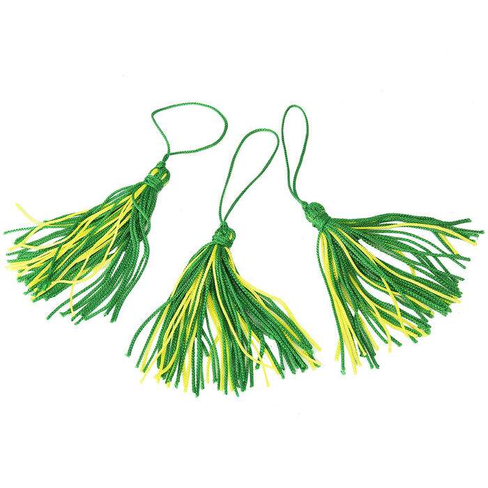 Descrição Pingente Tassel de Seda 7 Cm Verde e Amarelo C/50 Unidades