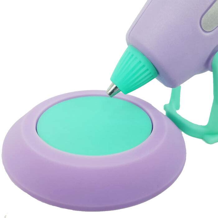 Esta pistola não é apenas funcional, mas também estilosa, com sua base de silicone que oferece estabilidade e proteção contra danos em superfícies delicadas.