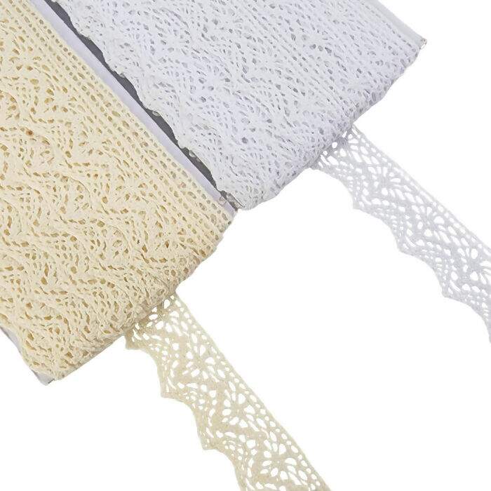 Feita 100% de algodão, a renda oferece um toque suave e natural, garantindo um acabamento elegante e sofisticado. Sua composição permite que você a utilize em diversas aplicações, desde detalhes em vestuário até enfeites para festas e eventos.