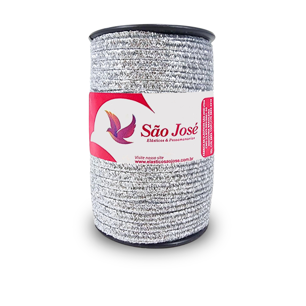 Soutache Metalizado 3mm c/ Elástico São José - 50m 022 - Prata Metalizado