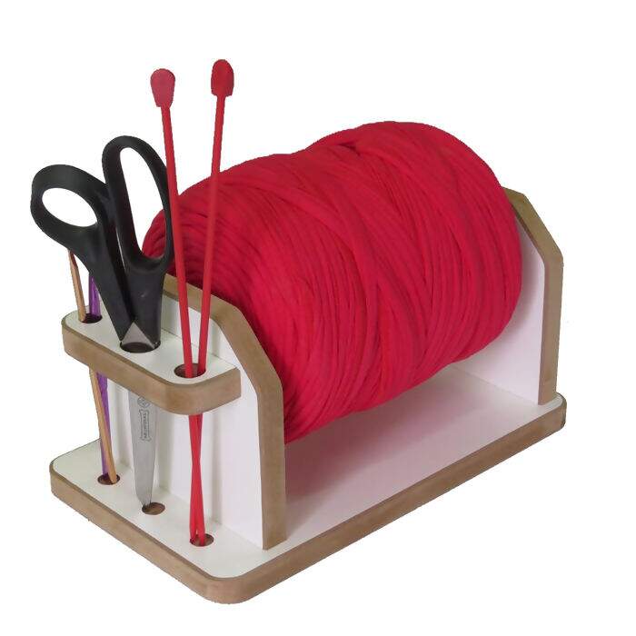 Suporte para fio de malha, feito de madeira, resistente e durável. Proteja seu produto e deixe seu trabalho mais ágil e organizado.