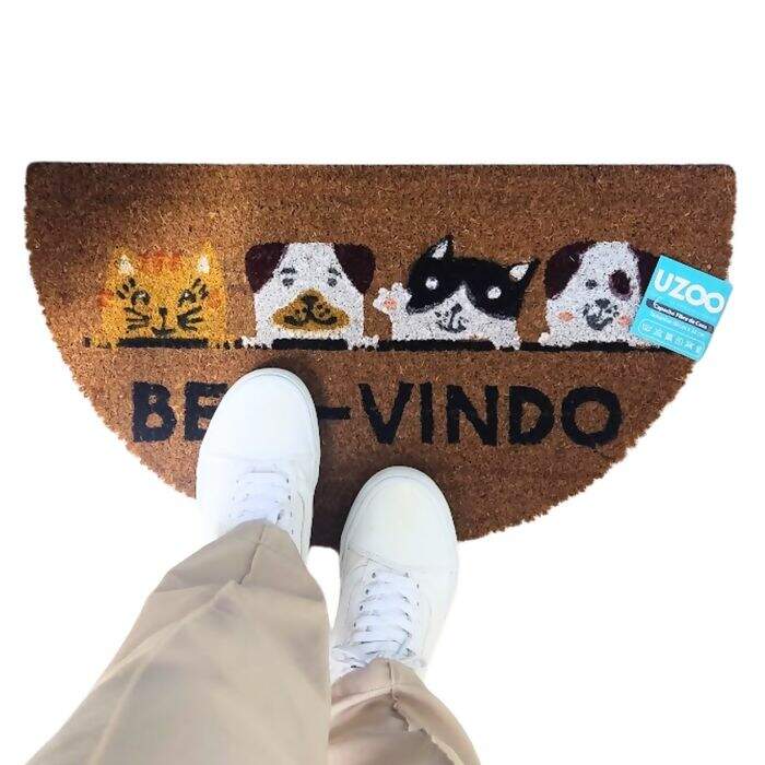 Descrição Tapete Capacho Meia Lua Uzoo Animais Fibra De Coco 60x33cm