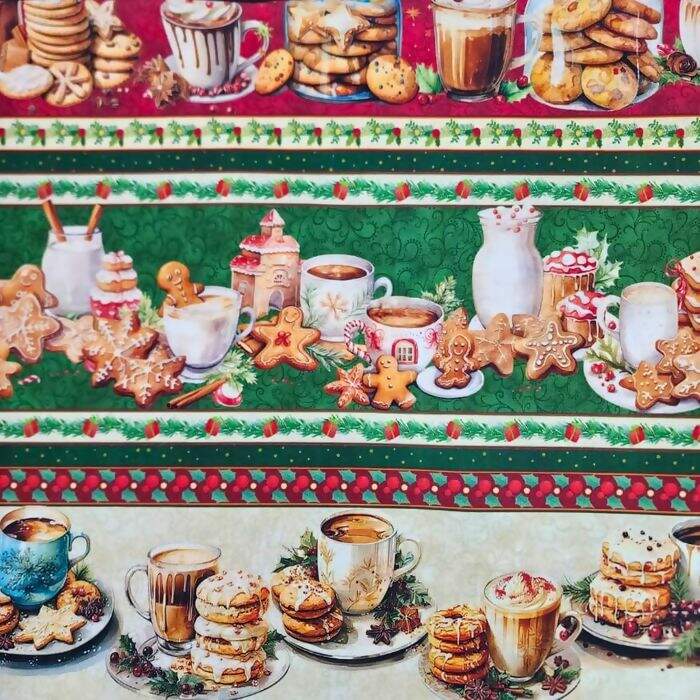 Tecido Natal Tricoline Barrado Digital - Cor 02. Perfeito para artesanato, patchwork e decoração natalina, esse tecido apresenta estampas de alta qualidade e cores vibrantes, tornando-o ideal para criar peças exclusivas e temáticas para o Natal. A estampa em barrado digital permite maior precisão nos detalhes e uma aparência sofisticada, valorizando ainda mais as suas criações. Medindo 1,0m de comprimento e 1,50m de largura, é feito de 100% algodão, proporcionando maciez, durabilidade e fácil manuseio.
