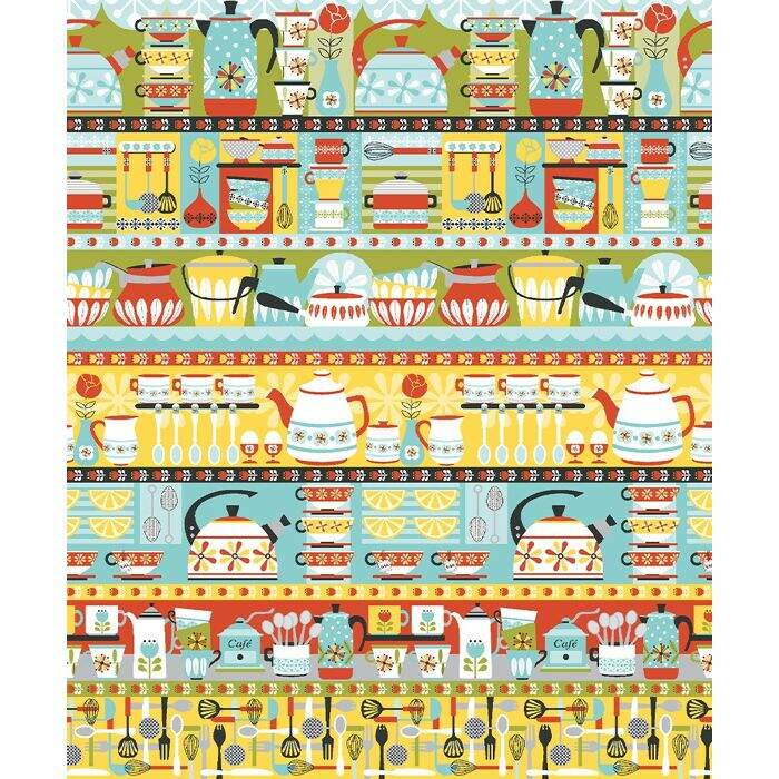 Descrição Tecido Tricoline p/ Patchwork - Cozinha - Ref: 351997 - 2142 Circulo - 1 Metro x 1,50mts