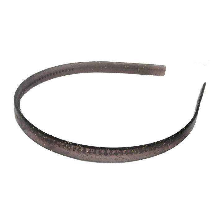 Tiara Plástica C/ Dente Preta Glitter 1,0 Cm Fina Pacote C/ 12