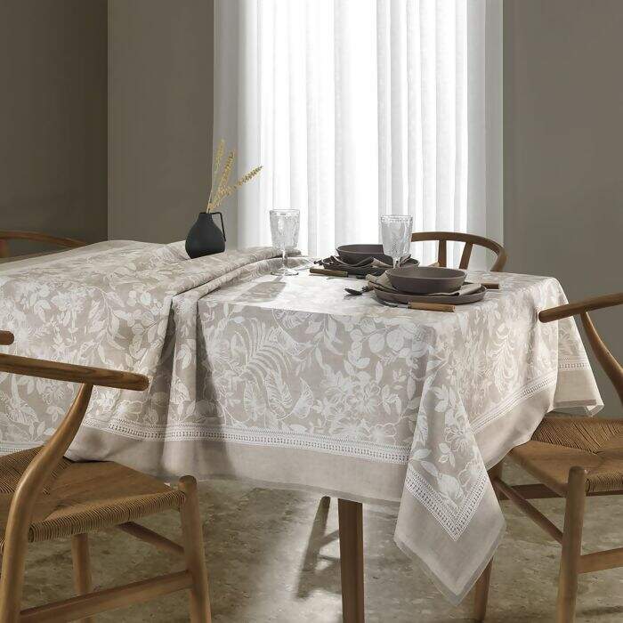 Toalha Renova possui estampas com desenhos ainda mais ricos em detalhes, conta com o acabamento Döhler Clean, uma proteção especial contra manchas que limpa facilmente passando apenas um pano de imediato sobre o produto. Com medidas de 1,40 metros de comprimento por 1,40 metros de largura, esta toalha é ideal para mesas quadradas de médio porte. Seu tamanho generoso oferece uma cobertura completa, criando uma base elegante para suas refeições.