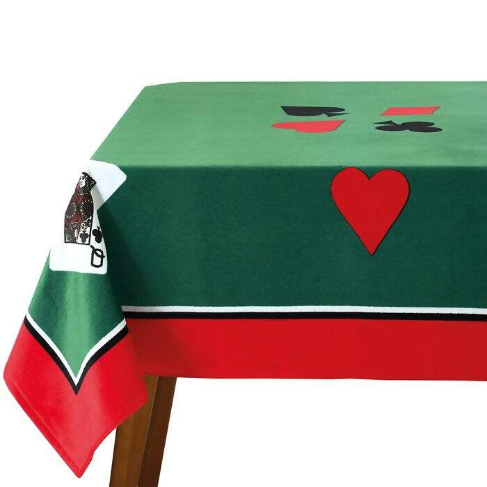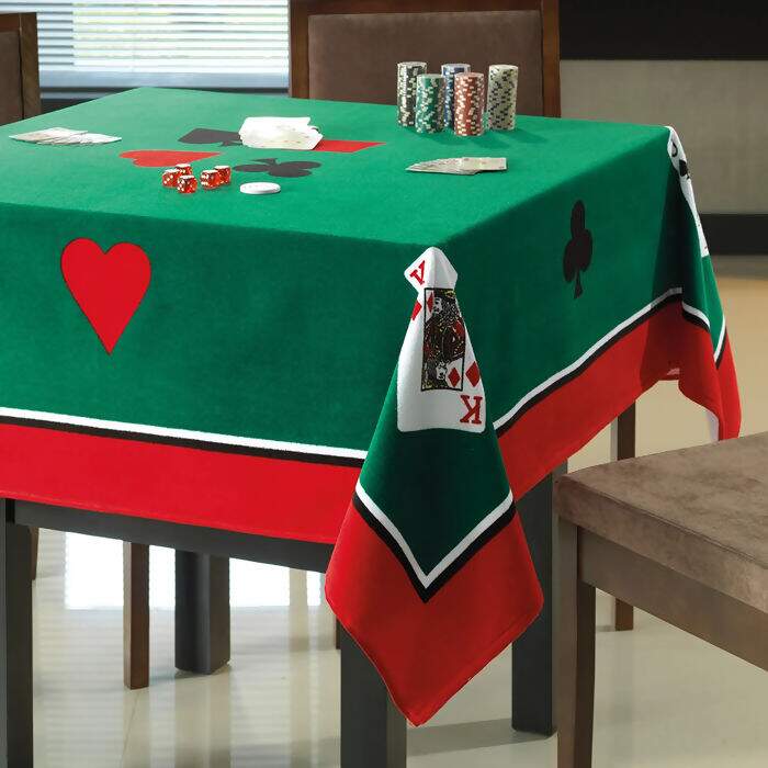 A estampa do modelo tem desenhos de cartas, com cores vivas e vibrantes. É ideal para compor a sua mesa de jogos, com lindo caimento.
