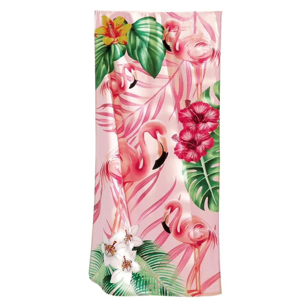 Toalha de Praia Dohler Estampada Flamingos.