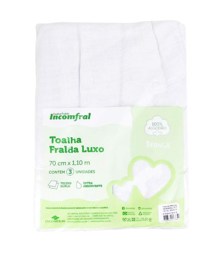 Descrição Toalha Fralda Luxo Incomfral 70cm x 1,10m - Branca