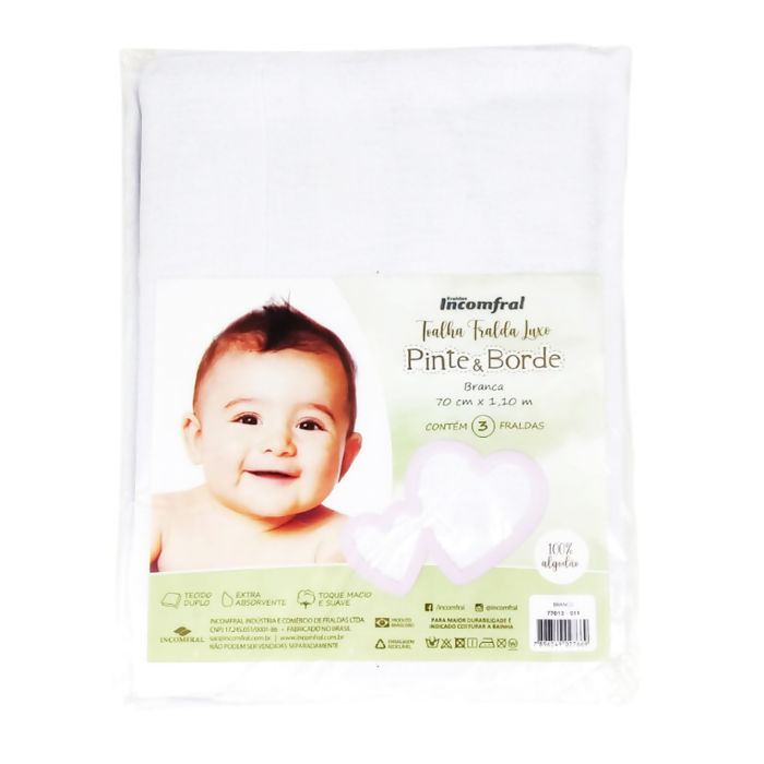 Descrição Toalha Fralda Luxo Incomfral Pinte e Borde 70cm x 1,10m C/3 Unid - Branca