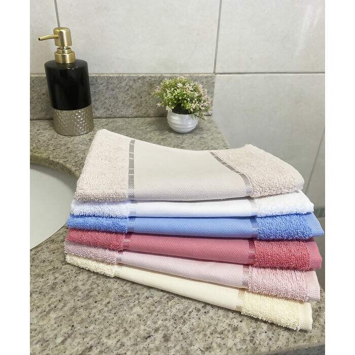 Toalha de Lavabo felpuda 100% algodão com barra lisa, ideal para pintura, aplicações e bordados. Com 11,5 cm de espaço na altura da mesma e 400 g/m². Possui cores modernas, excelente durabilidade e absorção, além de muita maciez e conforto.
